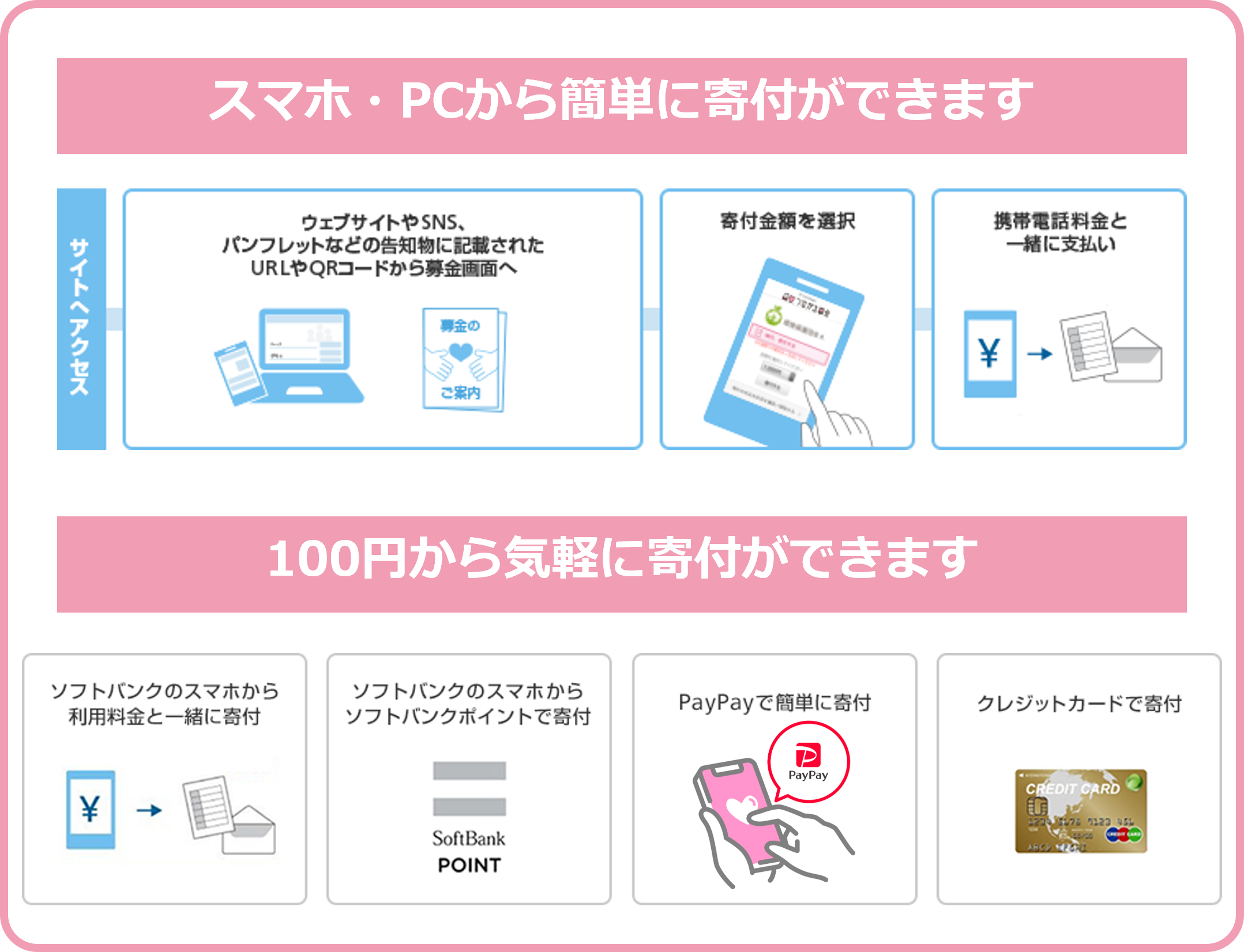 ※PayPayでの寄付・ソフトバンクポイントでの寄付は都度寄付のみ・領収書の発行対象外となります。